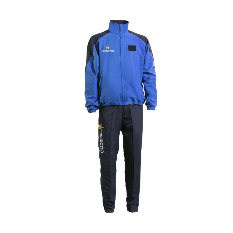 Tuta ginnica modello Esercito Italiano in tessuto poliestere con rete interna traspirante, ideale per chi cerca una tuta ginnica esercito italiano comoda, tecnica e dal look di abbigliamento militare. La divisa da tuta esercito italiano è composta da giubbino colore azzurro e pantalone blu notte, ispirati allo stile delle tute ginniche militari utilizzate in caserma. Prodotto pensato per chi ama l’abbigliamento esercito italiano, le divise militari e desidera una tuta ginnica militare adatta ad allenamento, tempo libero e uso quotidiano.